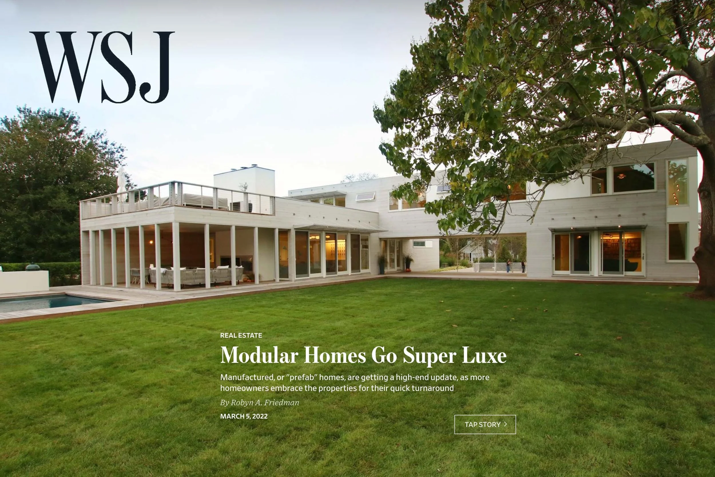 RES4 featured in WSJ Real Estate , “Modular Homes Go Super Luxe”.